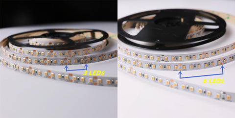 YUJILEDS offers 12V high CRI led strips and 24V high CRI led strips. They have the same number of LEDs, the same power and light output, just different voltage and amperage combination. However, 24V LED strips will generally perform better as the 24V version draws less amperage as described above.