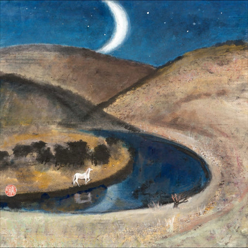Geng Yukun's Heavy-Color Masterpiece "Dunhuang Crescent Moon Spring" (1991) – A Sacred Oasis of the Silk Road in Miniature