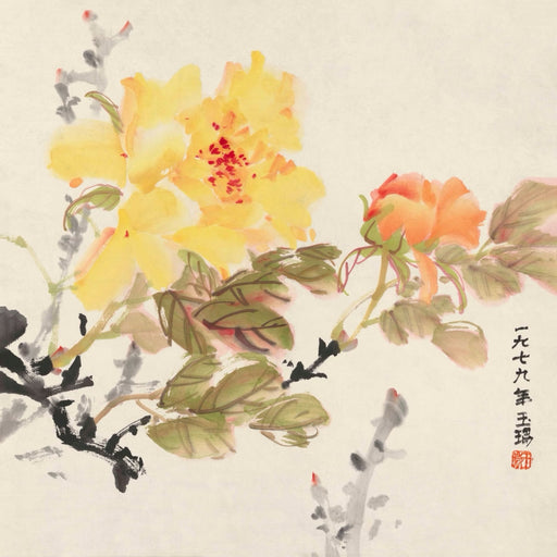 Geng Yukun's "Imperial Peony: Golden Prosperity" (1979) Ink Wash Painting Reproduction