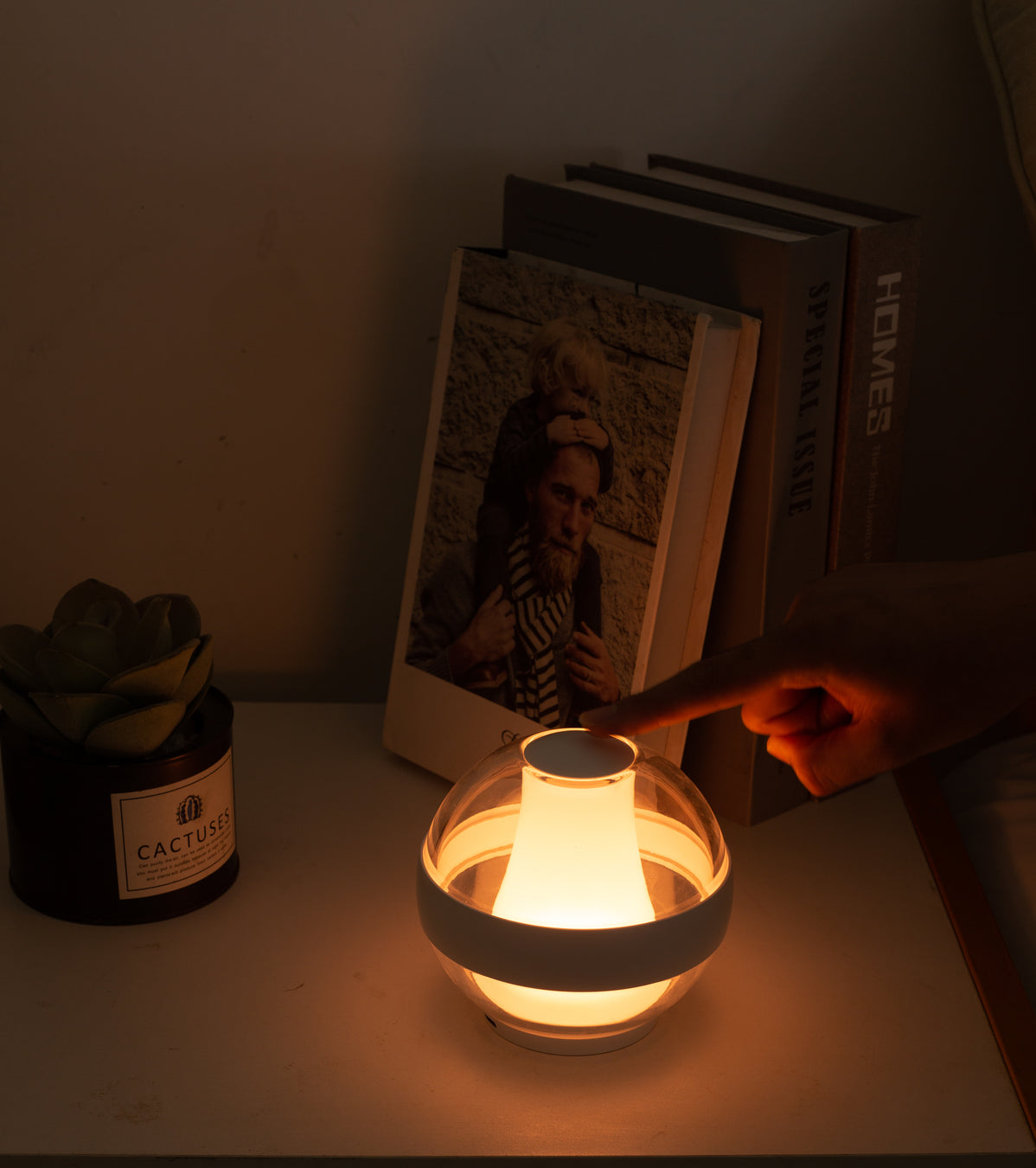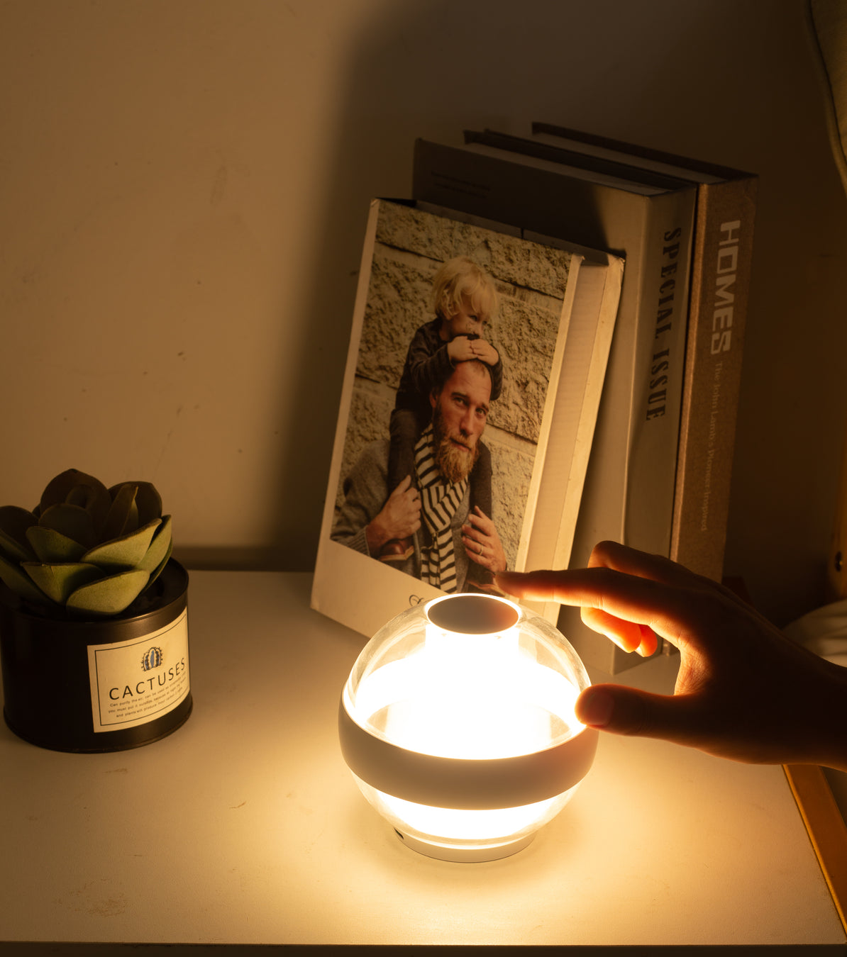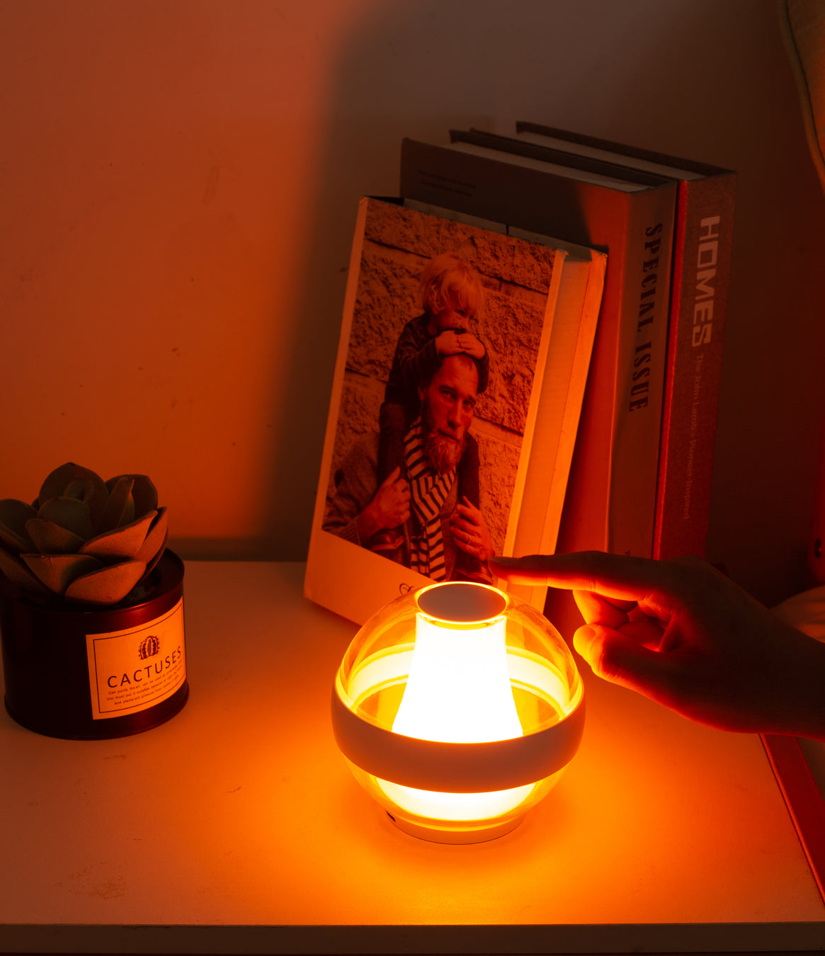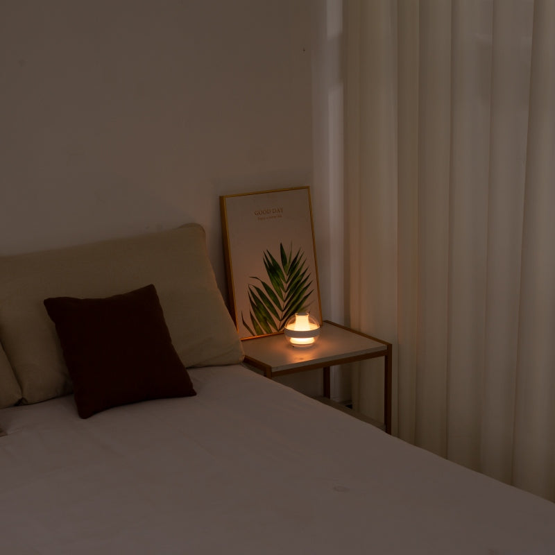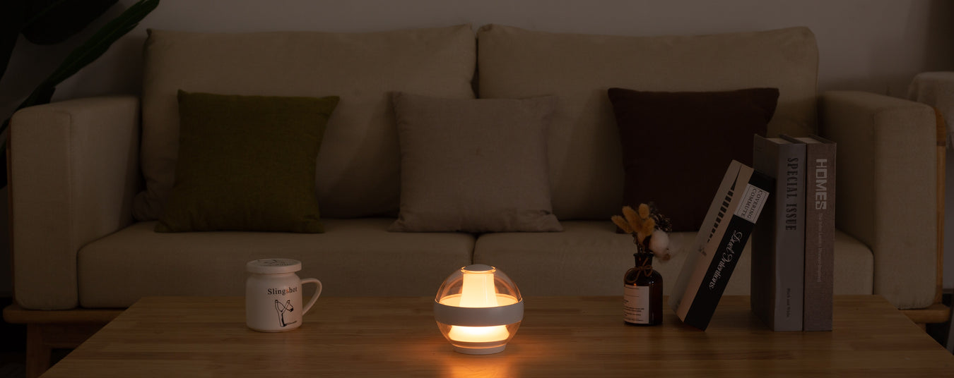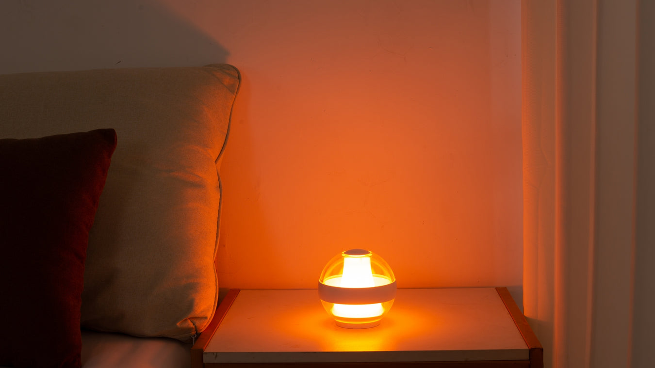Designed with your well-being in mind, our lamp promotes relaxation, focus, and better sleep, effortlessly. The SERENITY Lamp emits a warm, calming light, creating a soothing ambiance wherever you are-in your bedroom, in your living room, in your dinning room,in your bathroom. This gentle light helps you wind down after a busy day, signaling to your body that it's time to relax and prepare for a night of deep sleep.